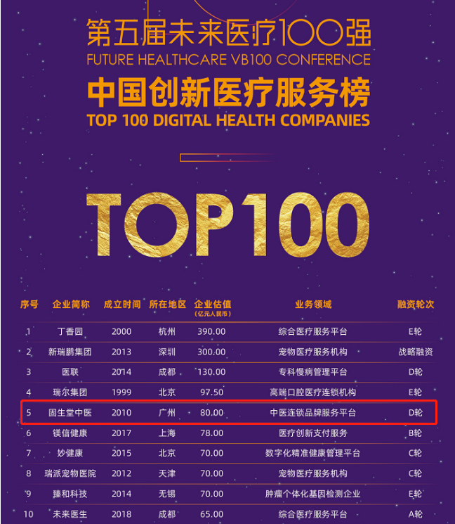 连续3年!固生堂中医荣登“未来医疗100强”